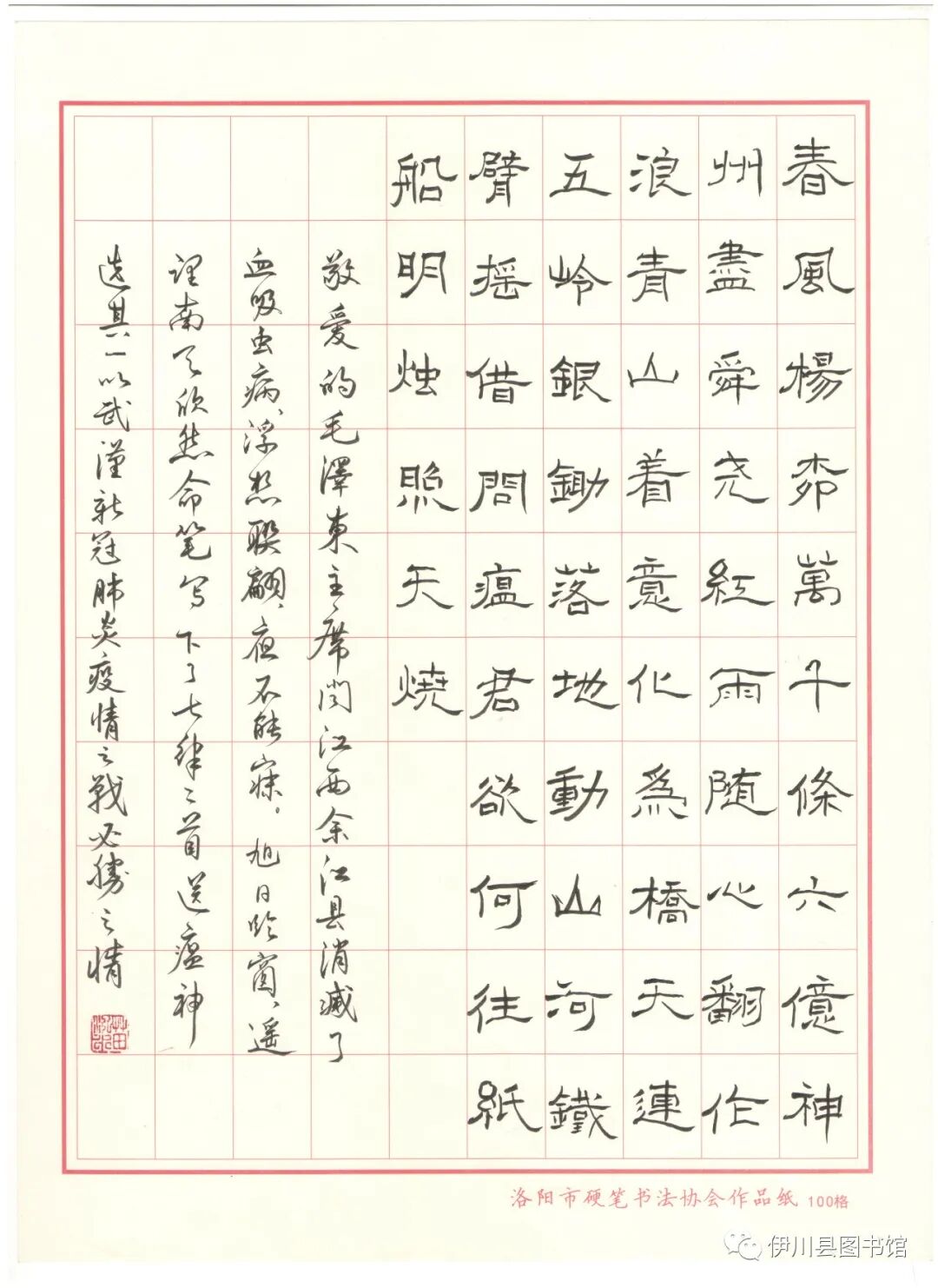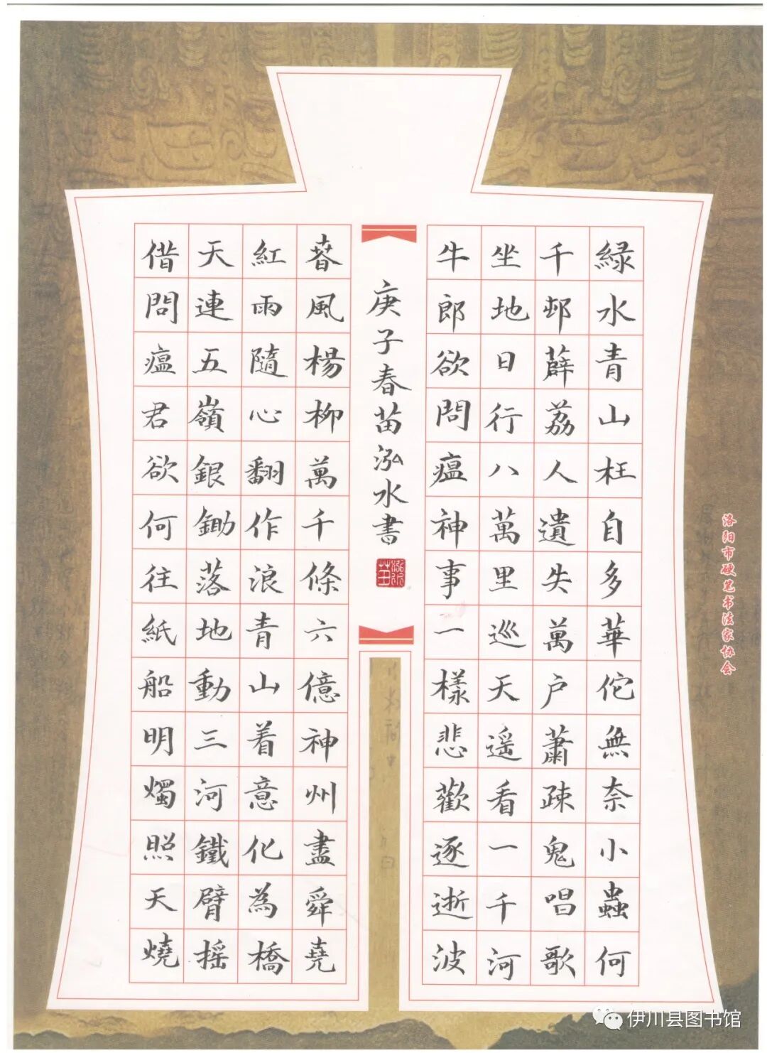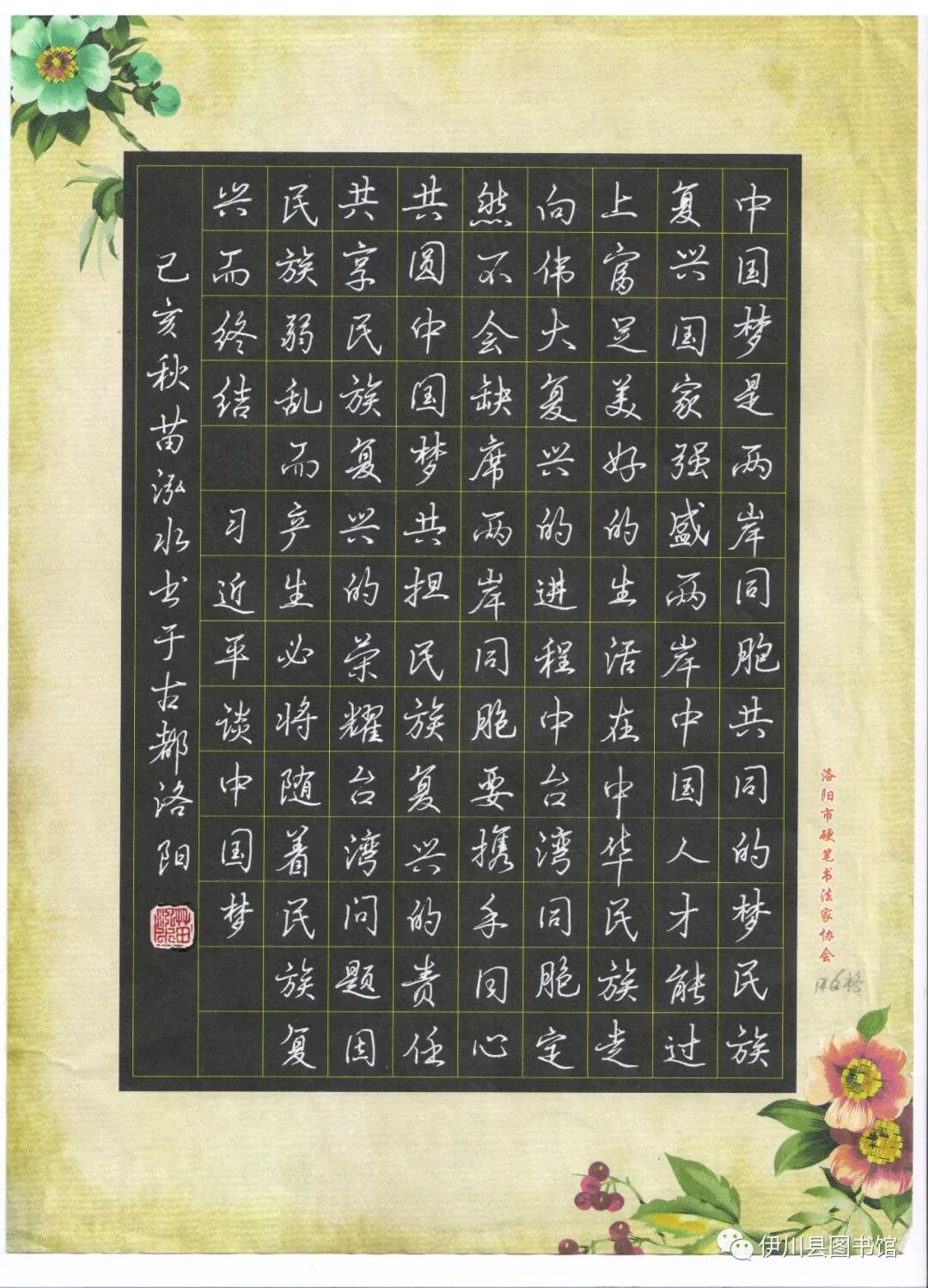 伊川县2013年成功创建全国第一个“中国硬笔书法名乡”并揭牌,连续十年成功举办伊川县硬笔书法大展赛,并出版优秀作品集。